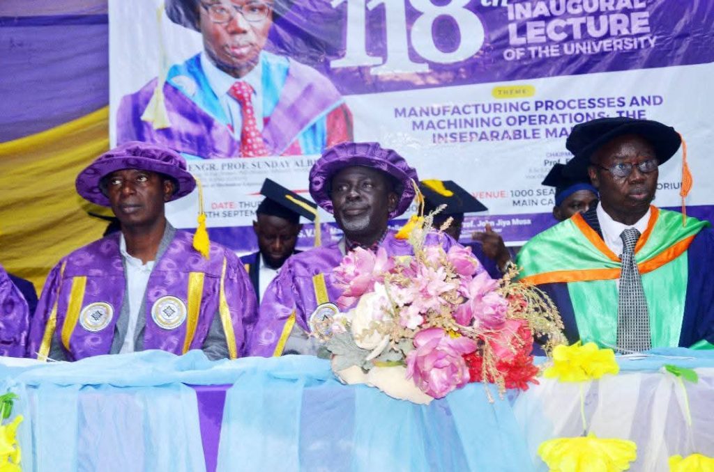 Engr. Prof. Sunday Albert Lawal delivered the 118th Inaugural Lecture of FUT, Minna, titled “Manufacturing Processes and Machining Operations: The Inseparable Marriage”, on Thursday, September 25, 2025 at the University Auditorium, Main Campus.He explored the vital link between these two key aspects of mechanical engineering and their role in industrial innovation.