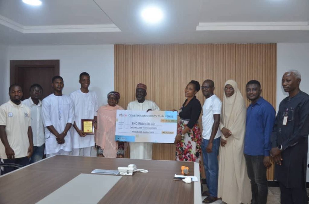 Team Waste2Light of the Federal University of Technology, Minna has emerged 2nd Runner-Up at the 2025 Coderina University Challenge (COUCH) held in Abuja, winning a cash prize of ₦1.5 million. The team presented their cheque to the Vice-Chancellor, Prof. Faruk Adamu Kuta, on Tuesday, December 2, 2025, at the Main Campus.